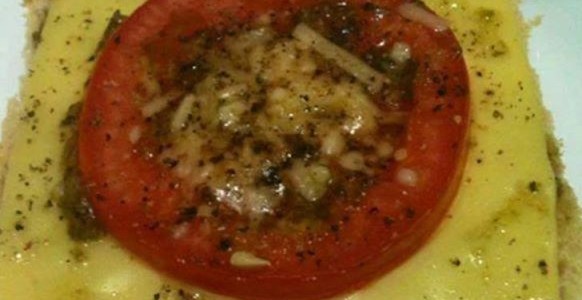 6 fatias de pão de forma sem casca 6 fatias de queijo prato ou outro de sua preferência 6 fatias de tomate italiano 6 colheres (sopa0 de queijo parmesão ralado grosso molho pesto sal ou glutamato monossódico mix de pimenta do reino (branca, preta e vermelha) (opcional)