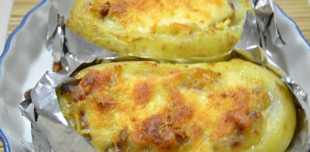 Quando a batata estiver fria, faça um corte pela parte superior e retire o miolo, com cuidado para que não quebrem, ai vai ser colocado o recheio. Não deixe as paredes muito finas.