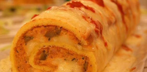 No momento de servir, leve o rocambole ao forno preaquecido à 200ºC e deixe por aproximadamente 15/20 minutos ou até gratinar.
