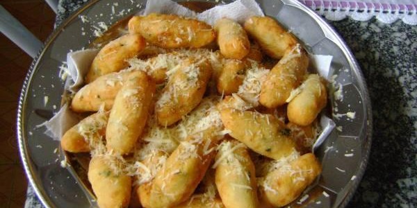 • Quando a massa estiver mais consistente sem grudar na mão, faça rolinhos e frite no óleo quente em fogo baixo