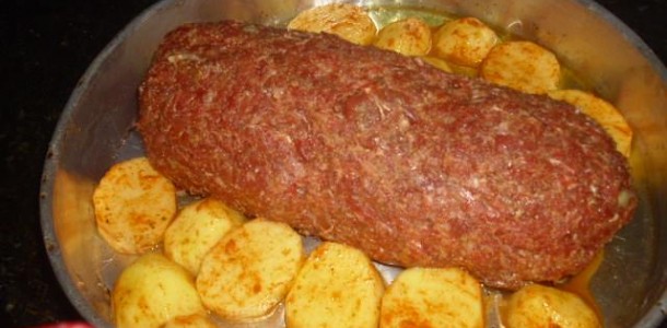 Após temperar a carne acrescente o ovo e misture, vai colocando a farinha de rosca aos poucos, até dar liga, abra em uma superfície lisa de cumprido como se fosse massa de pão) coloque um pouco do recheio e enrole, coloque mais um pouco e enrole novamente até o final. vai juntando para não deixar buracos.coloque óleo ou azeite no tabuleiro e deixe assar por 40 minutos. eu coloco umas batatas temperadas com sazon