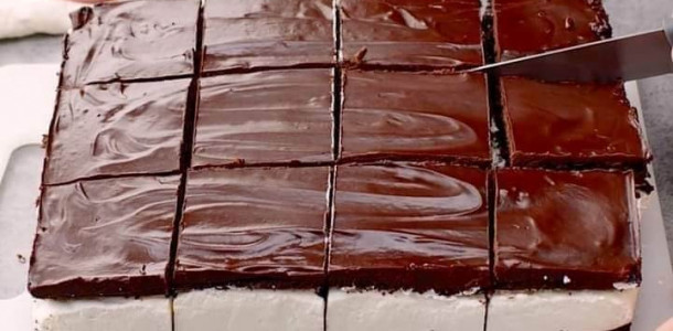 3. Divida o biscoito de cacau preparado em duas partes. Transfira a primeira peça para o molde.